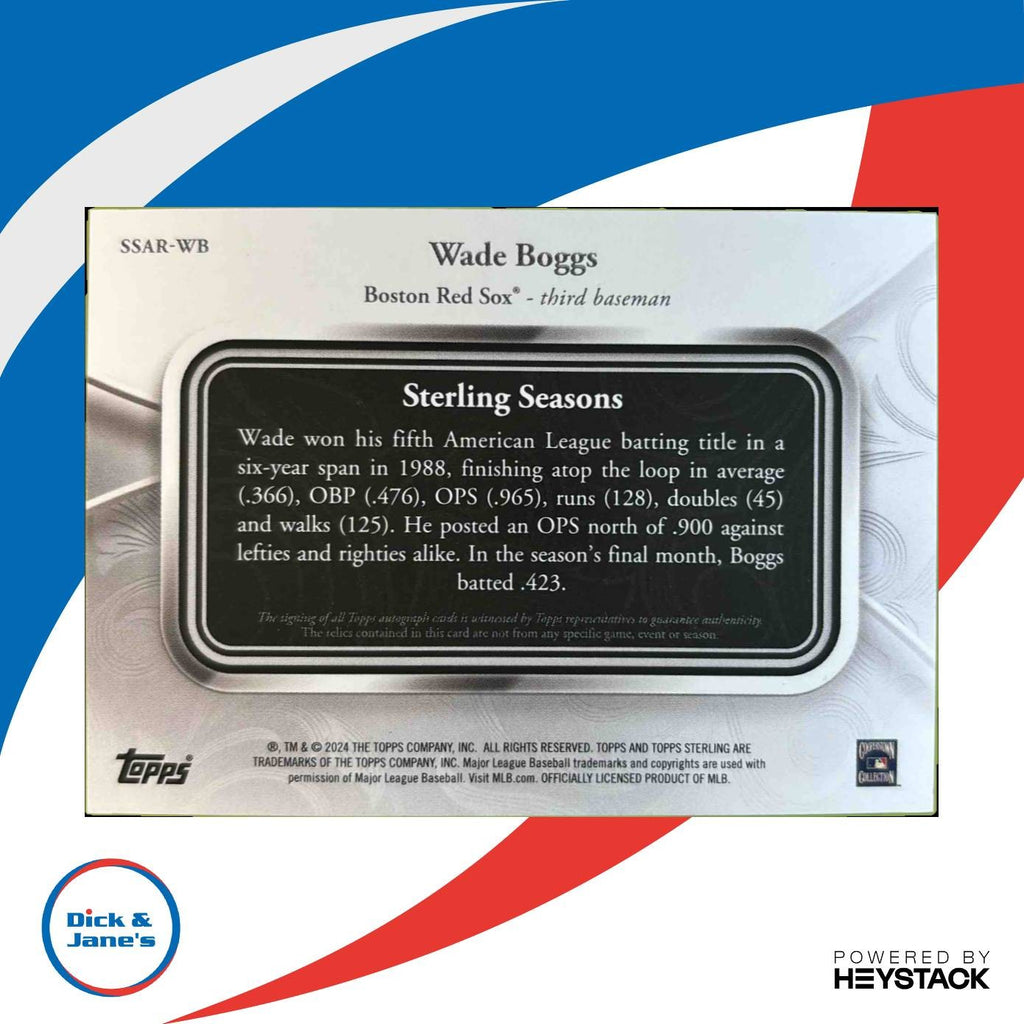 2024 Topps Sterling Wade Boggs Seasons 5/25 JERSEY BAT Auto Boston Red Sox Listed With Mascot.