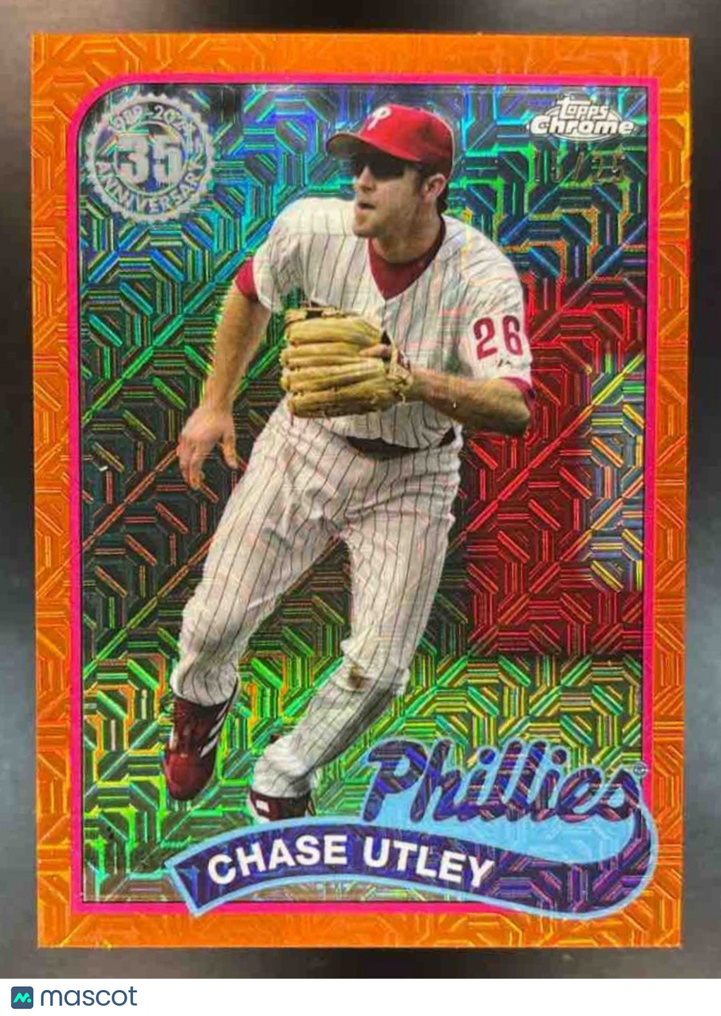 Own a piece of baseball history with this rare 2024 Topps Update Chase Utley 89 Baseball Chrome Silver Pack Orange card. Limited to only 25 copies, this vibrant orange card is a must-have for any Philadelphia Phillies or Chase Utley fan. Add this unique collectible to your card collection today!