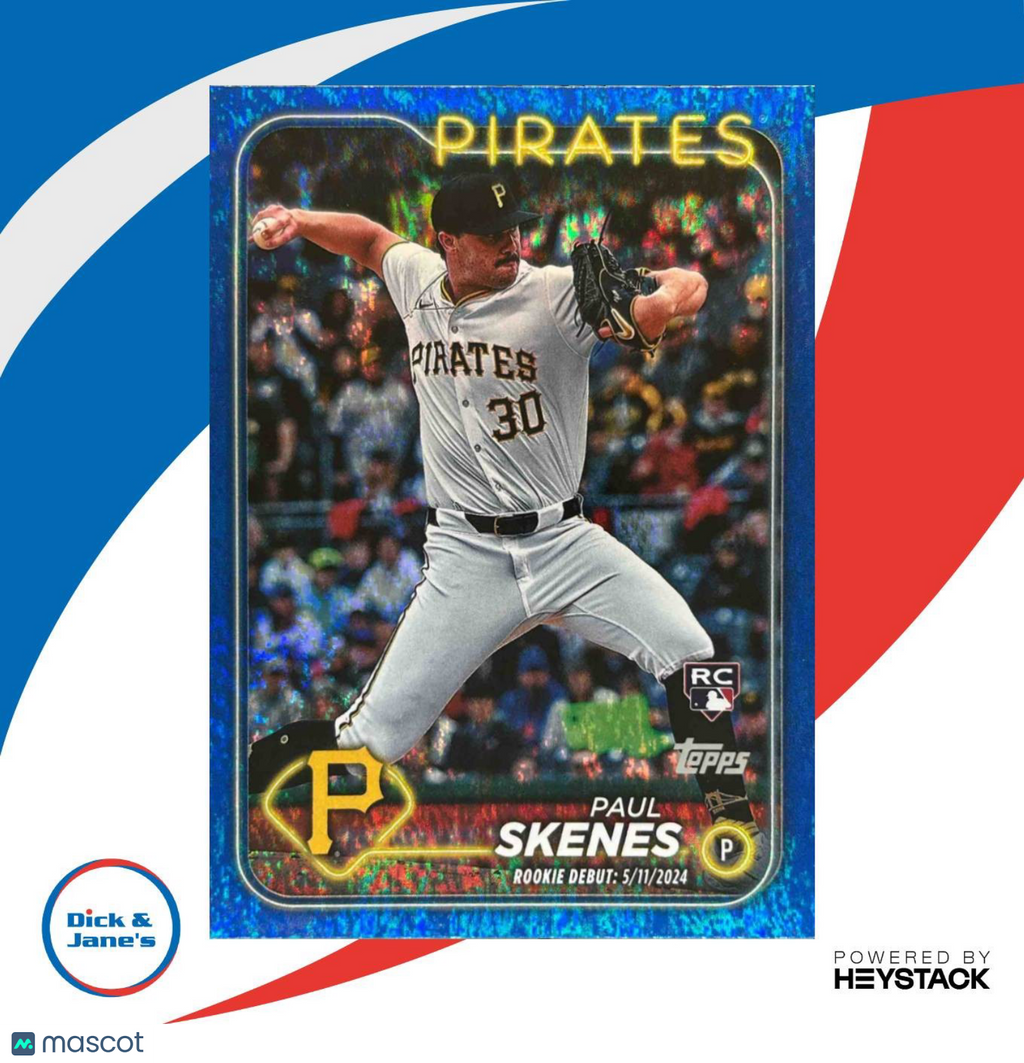 2024 Topps Update Paul Skenes Blue Holofoil 907/999 #US288 RC Pittsburgh Pirates Listed With Mascot.