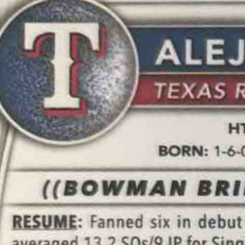 2025 Bowman Chrome Alejandro Rosario Prospect Auto HTA Choice /150 Rangers is a limited edition MLB trading card featuring an autograph from the rising star Alejandro Rosario. With only 150 copies available, this card is a must-have for any sports card collector or fan of the Texas Rangers. Don't miss your chance to own a piece of baseball history! Listed With Mascot.