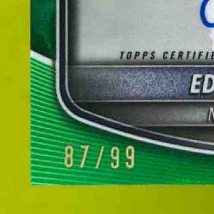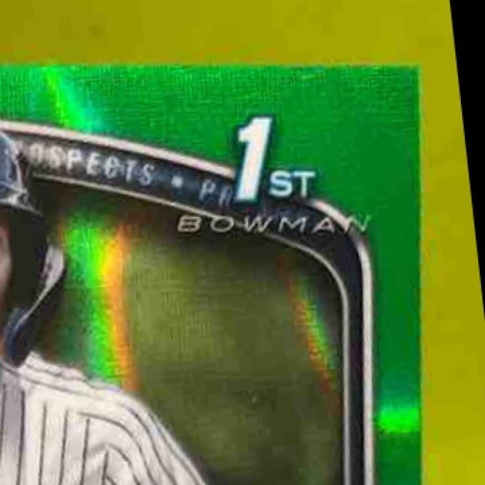 Own a piece of baseball history with this 2025 Bowman Edgleen Perez Chrome Auto Green Lava trading card. This rare card features the 1st Prospect Auto of Yankees player Edgleen Perez and is limited to just 99 copies. Don't miss your chance to add this unique collectible to your sports card collection. Listed With Mascot.