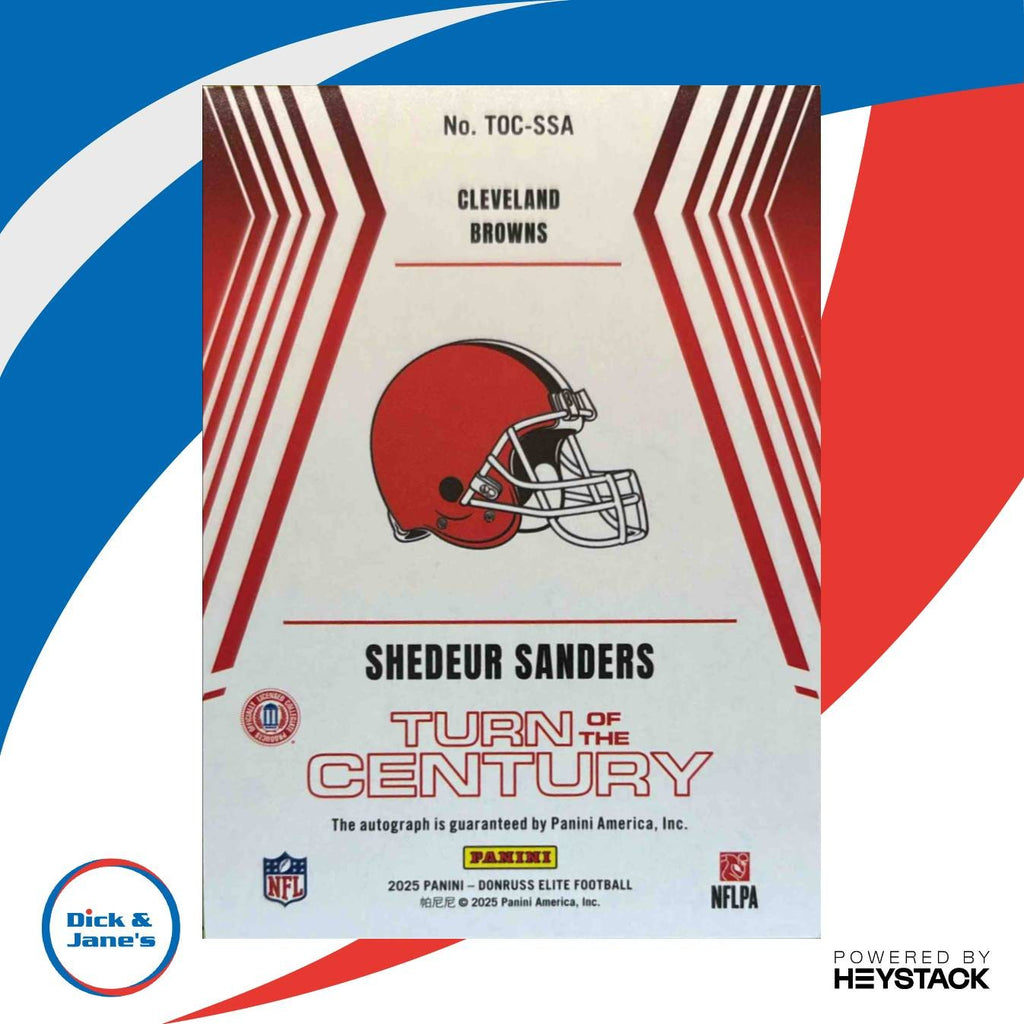 2025 Donruss Elite Shedeur Sanders Turn of the Century Auto 164/499 RC Cleveland Listed With Mascot.