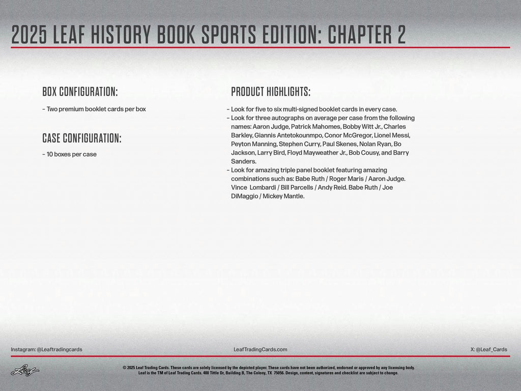 2025 Leaf History Book Sports Edition: Chapter 2 Hobby Box