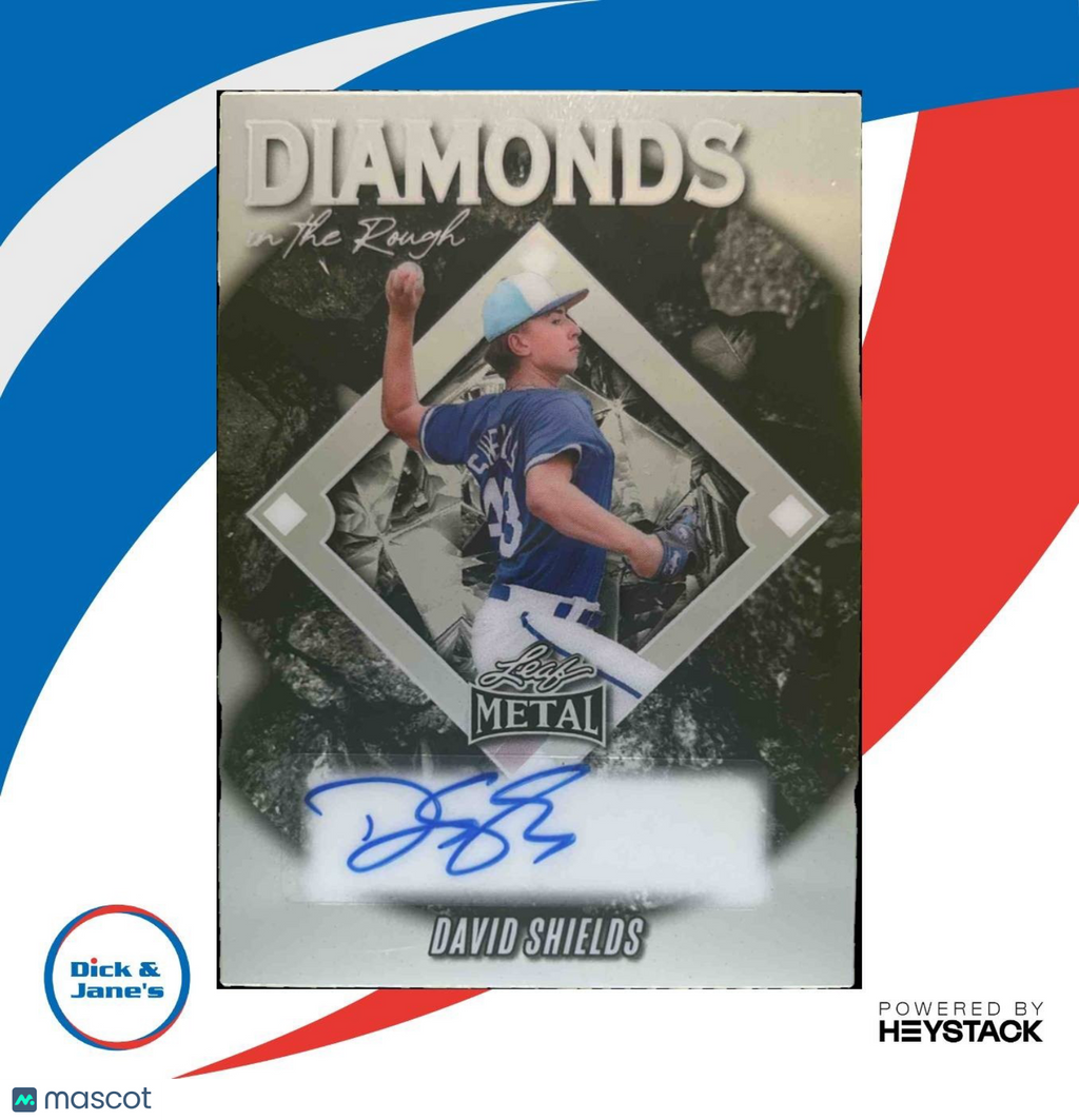 The 2025 Leaf Metal David Shields Diamond in the Rough Auto Silver /49 sports trading card is a rare find with only 49 in existence. This card features an autograph from David Shields and is a must-have for any sports card collector. Don't miss out on adding this valuable piece to your collection! Listed With Mascot.