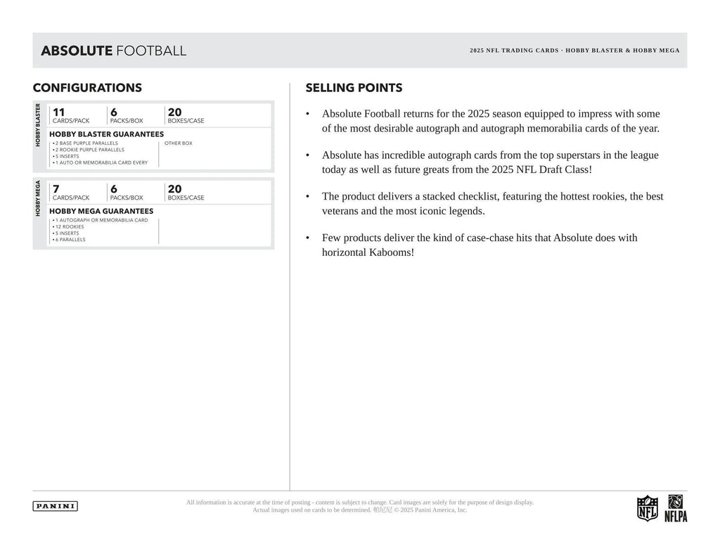 Absolute has incredible autograph cards from the top superstars in the league today as well as future greats from the 2025 NFL Draft Class!