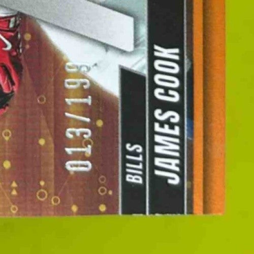 This limited edition 2025 Panini Donruss Elite James Cook Full Throttle Orange /199 #6 Buffalo Bills trading card is a must-have for any NFL collector. Featuring an action shot of Cook in full throttle mode, this rare card is sure to be a standout in any collection. Don't miss out on adding this unique piece to your trading card lineup! Listed With Mascot.