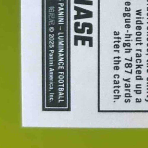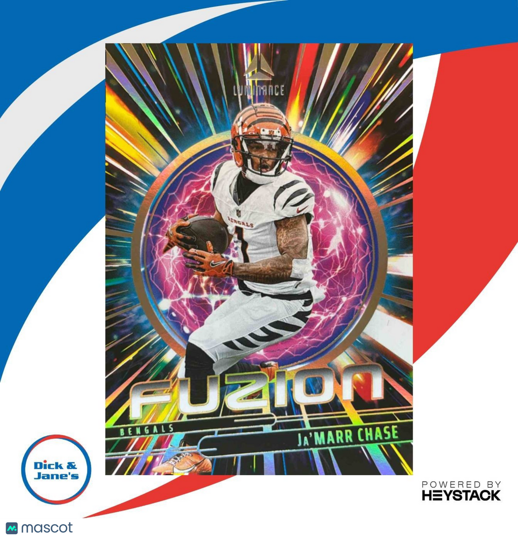 The 2025 Panini Luminance Ja'Marr Chase Fuzion #12 Cincinnati Bengals trading card is a must-have for NFL fans and collectors. Featuring the star wide receiver in a dynamic action shot, this card is a rare find. Don't miss your chance to own a piece of sports history with this unique and valuable collectible. Listed With Mascot.