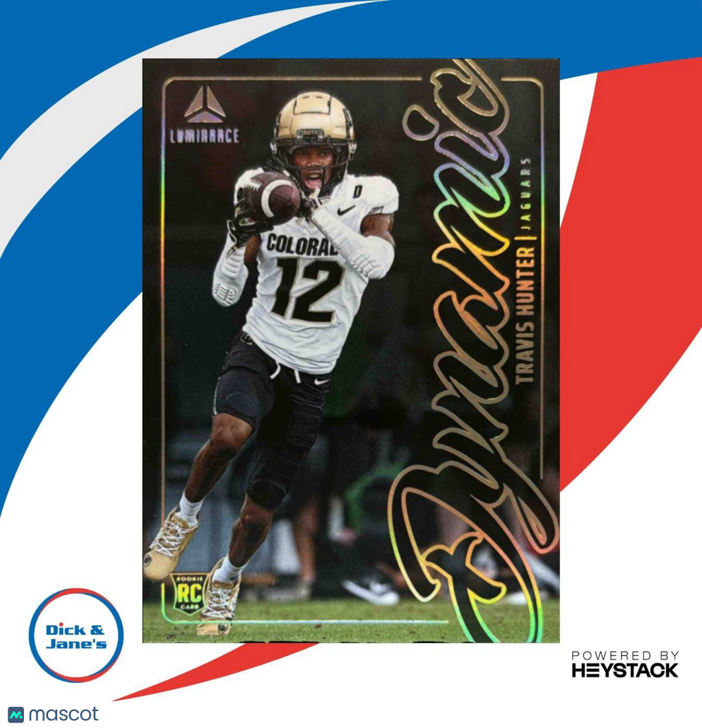 The 2025 Panini Luminance Travis Hunter Dynamic Rookies #1 Jacksonville Jaguars trading card captures the excitement of the NFL's newest star. With a stunning design and limited availability, this card is a must-have for any collector. Don't miss your chance to own a piece of football history! Listed With Mascot.