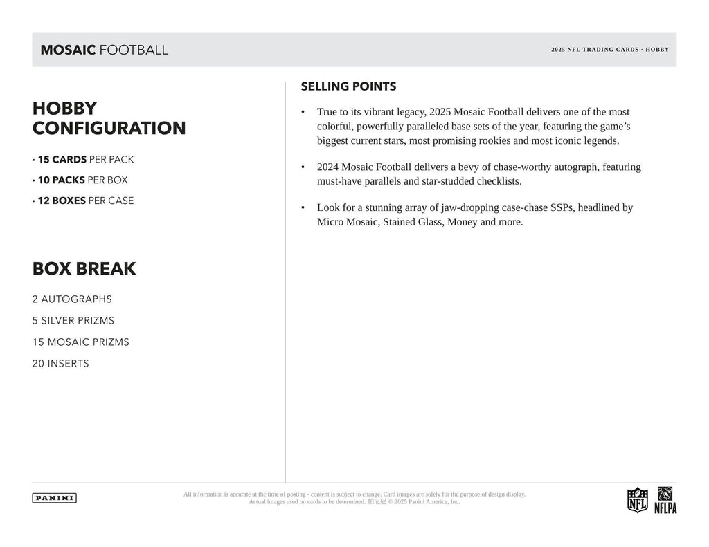 2025 Panini Mosaic Football Hobby Box (2 Autos)