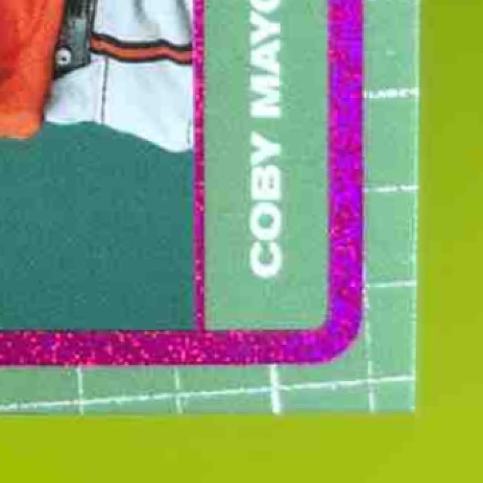 The 2025 Pulse Meridian Coby Mayo Speckled Purple /7 #5 sports trading card is a rare and highly sought after collectible. Featuring a unique speckled purple design, this limited edition card is one of only 7 in existence. A must-have for any sports card collector or fan of Coby Mayo. Don't miss out on the opportunity to own this exclusive piece of memorabilia. Listed With Mascot.