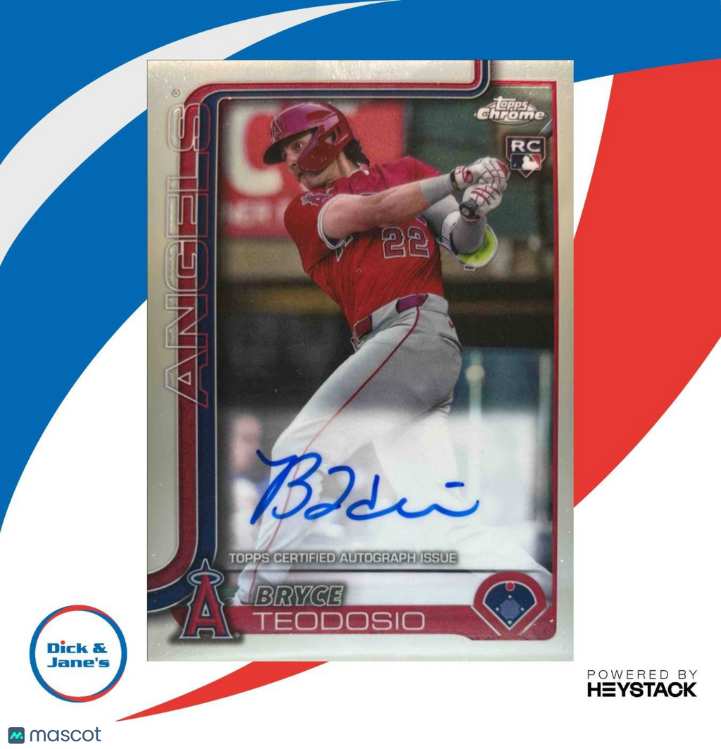 Own a piece of baseball history with this 2025 Topps Chrome Bryce Teodosio Rookie Auto trading card #RA-BTE RC Angels. This MLB card features Teodosio's autograph, making it a must-have for any collector. Don't miss out on this rare and valuable card! Listed With Mascot.