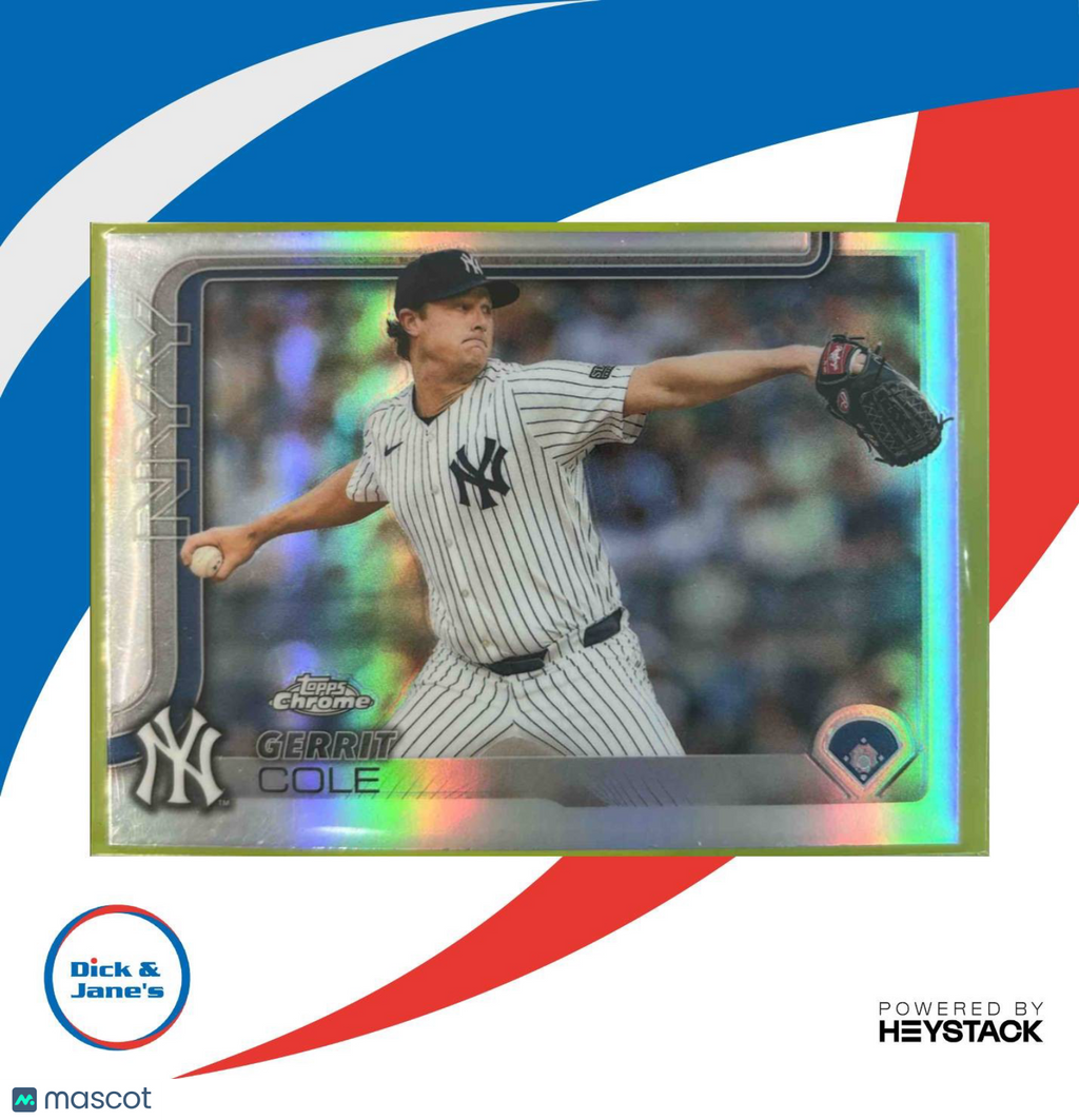 2025 Topps Chrome Gerrit Cole Refractor #110 New York Yankees Listed With Mascot.