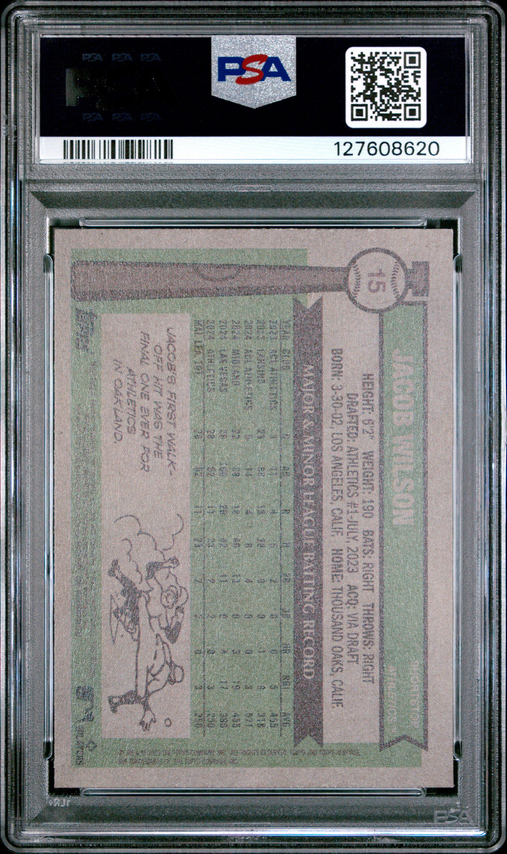 2025 Topps Heritage Jacob Wilson Rookie #15 PSA 9 MINT A's Don't miss your chance to own this standout 2025 Topps Heritage Jacob Wilson Rookie card, graded PSA 9 MINT! This highly sought-after card features the rising A's star and is perfect for collectors looking to add a top-graded rookie to their baseball card collection. With only 41 in this grade and just 43 graded higher, this card is a rare find that won't last long! Certified by Professional Sports Authenticator (PSA) with certification number 127608620, this rookie card is a must-have for fans and serious collectors alike. Secure this investment piece now and celebrate the future of baseball with a card that's set to increase in value! Set: 2025 Topps Heritage Certification Number: 127608620 Grader: Professional Sports Authenticator (PSA) Player/Athlete: Jacob Wilson Grade: 9 Year Manufactured: 2025 Graded: Yes Sport: Baseball Population Higher: 43 Manufacturer: Topps Population: 41 Team: A's Features: Rookie Card Number: 15 Listed With Mascot.