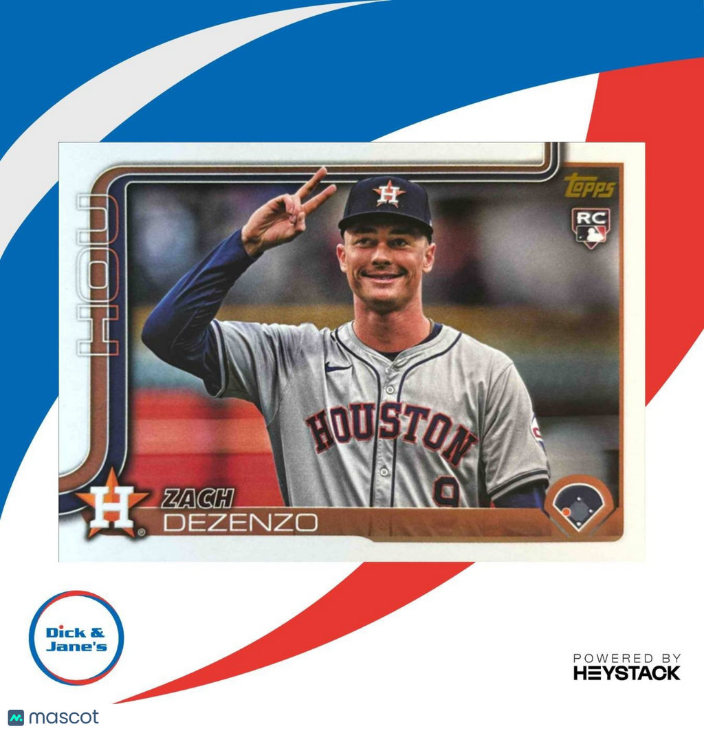 Get your hands on the highly sought-after 2025 Topps Zach Dezenzo Golden Mirror Variation SSP #89 RC trading card featuring the up-and-coming star from the Houston Astros. This rare rookie card is a must-have for any collector and is sure to be a valuable addition to your collection. Don't miss out on this opportunity to own a piece of baseball history! Listed With Mascot.