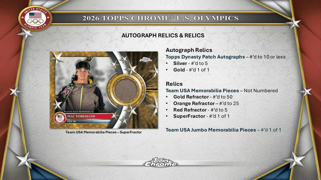 Every four years United States winter sport athletes compete to bring home the Gold for Team USA. This year in Milano Cortina will be no different. Collect United States Olympic hopefuls, stars, past legends, and Paralympic athletes of the 2026 Winter Games!