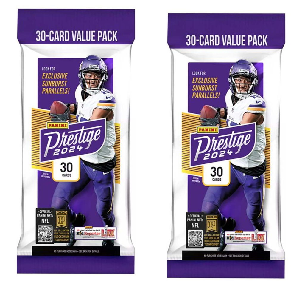 TWO PACKS of 2024 Panini Prestige Football NFL Fat Value Cello Packs