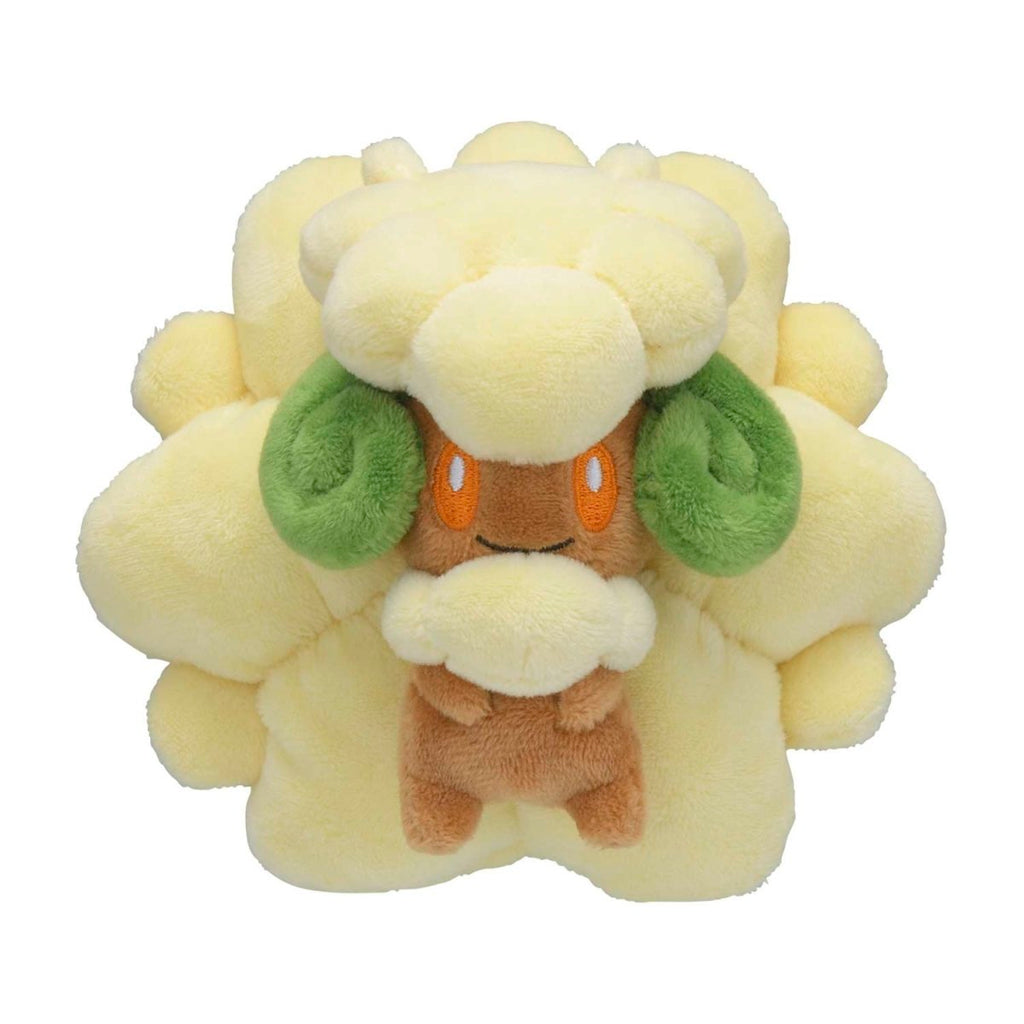 The Whimsicott Sitting Cuties Plush is weighted with microbeads, so it sits up when you put it on a flat surface. This palm-sized plush is a fun, charming way to show off a favorite Grass- and Fairy-type Pokémon originally discovered in Unova!